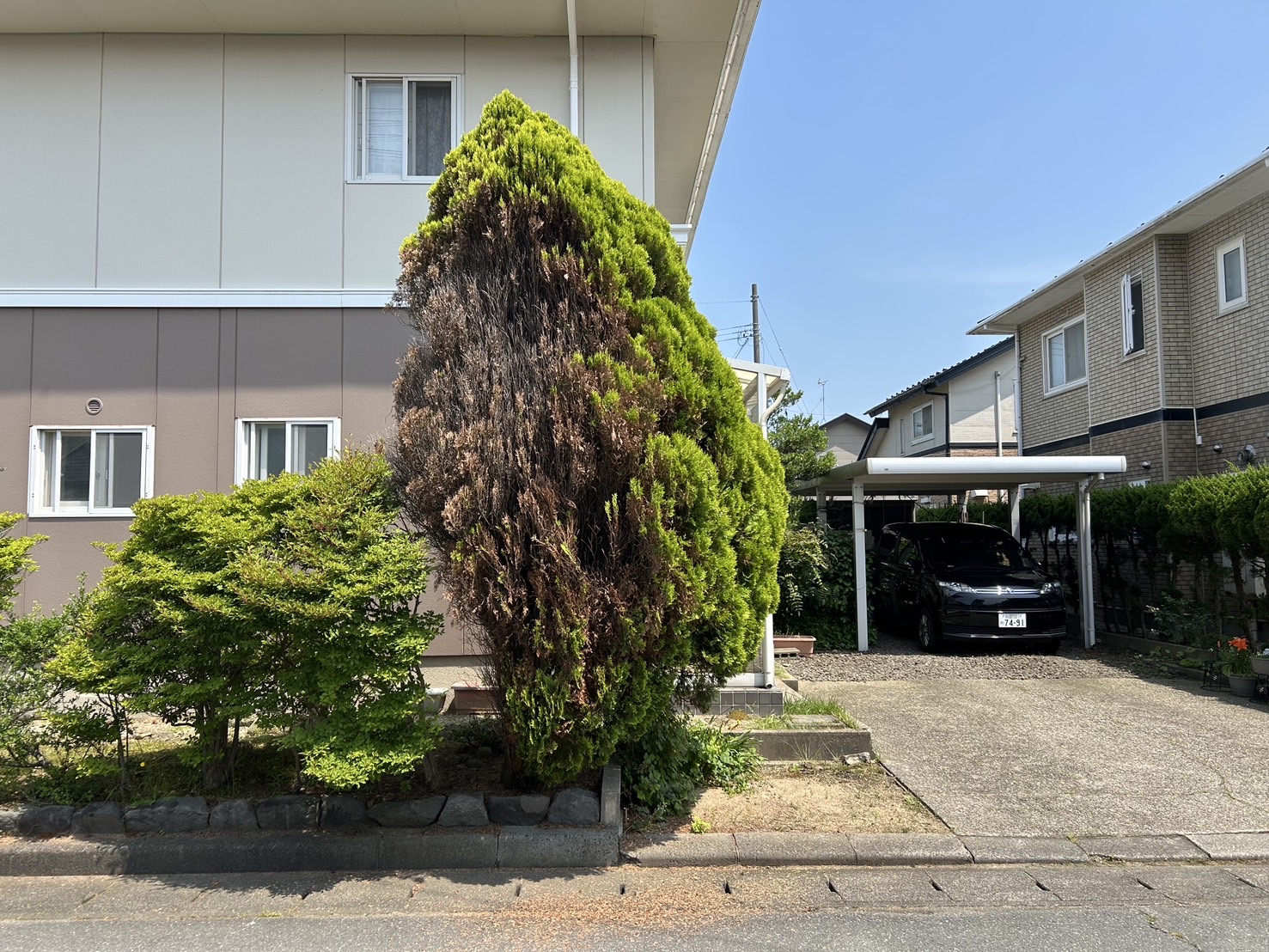 岐阜市のお客様から、「敷地内にある3〜4メートルくらいの木を根元から切ってほしい」とご依頼いただきました。